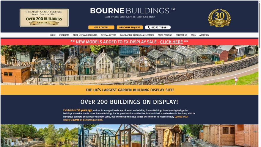 Bourne Buildings Ltd - based in Farnham Surrey. Over 200 Buildings, 5000 Stone Ornaments & 100 Garden Furniture sets on display. Our range includes: Sheds, Summerhouses, Garden Offices, Garages, Playhouses, Animal Housing, Garden Bars, Greenhouses, Garden Rooms.